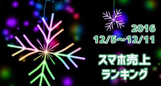 2016年12月5日~12月11日 週間スマホ・携帯売上ランキング
